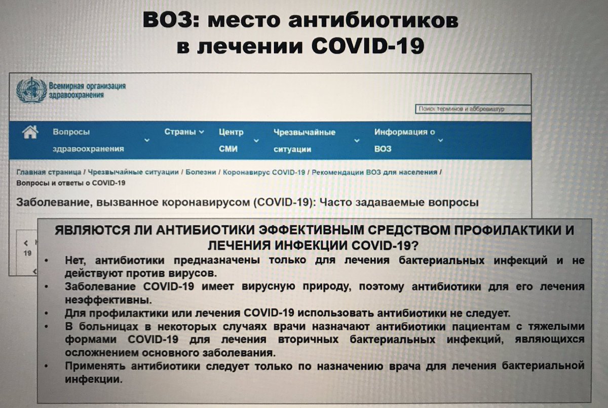 у меня очень много людей спрашивает, какие антибиотики им принимать при ковидной пневмонии, но я снова возвращаюсь к тому факту, что в данной ситуации речь идёт не о классической бактериальной пневмонии, а о специфическом интраальвеолярном процессе, вызванным вирусом (скрин EUAT)
