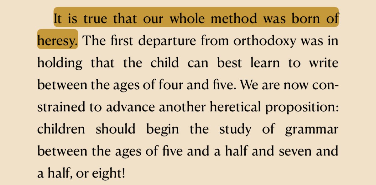 the tragedy of all the original montessori books is that the pedagogy is not the point — it's a mistake to only see it as some novel ways of getting read, write, math