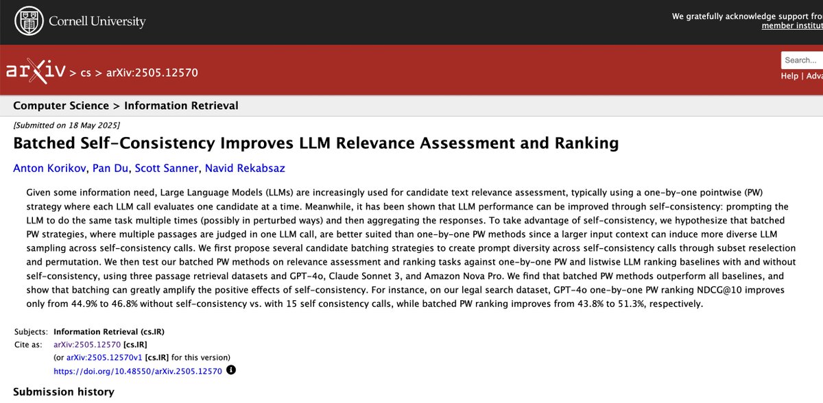 βBatched Self-Consistency Improves LLM Relevance Assessment and Rankingβ (arXiv, May 2025)