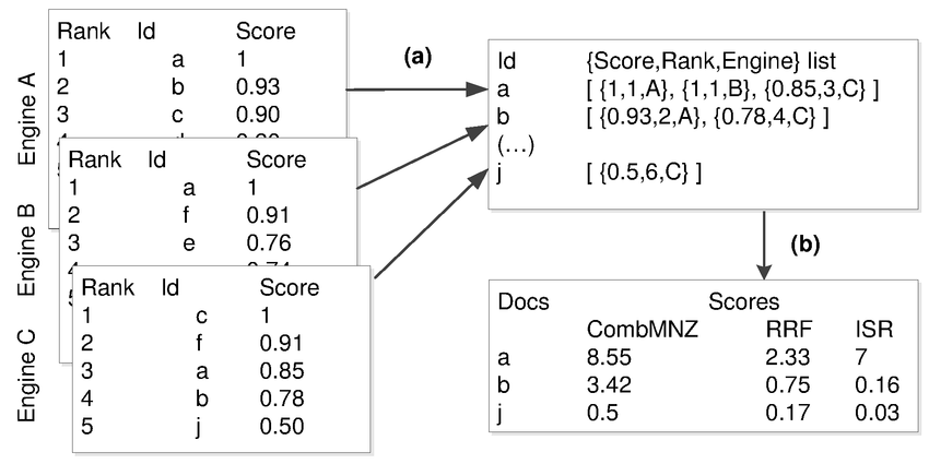 Then combines ALL results using: Score = 1/(60 + rank position)