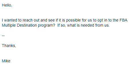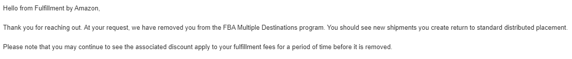 1. On March 8th, I contacted Amazon with questions about opting into the "multiple destination" program. I then get a reply today that Amazon has opted me out (umm, I was never notified I was opted in?)....
