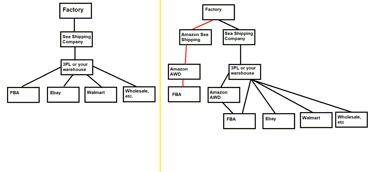 2. The image on the right is now what Amazon sellers have to deal with. This is a BASIC chart, it's actually much more complex but as you can see, there are now more decisions that need to be made.