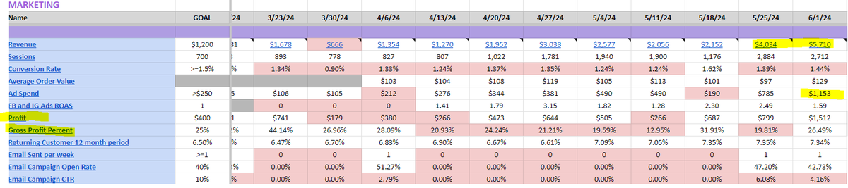 our floor for weekly gross profit is now 1K+ but I am confident we can 5x this by EOY with more paid marketing streams and a higher LTV.