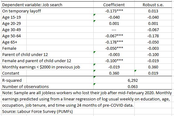 These estimates, from a linear probability model, suggest to me that in mid-May caregiving constraints and virus fears were more important labour supply obstacles than CERB-induced work disincentives. #cdnecon #cdnpoli
