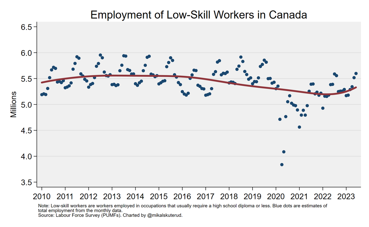 And if you think declining wages of Canada's low-skill workers in recent months reflects decreasing demand, think again.