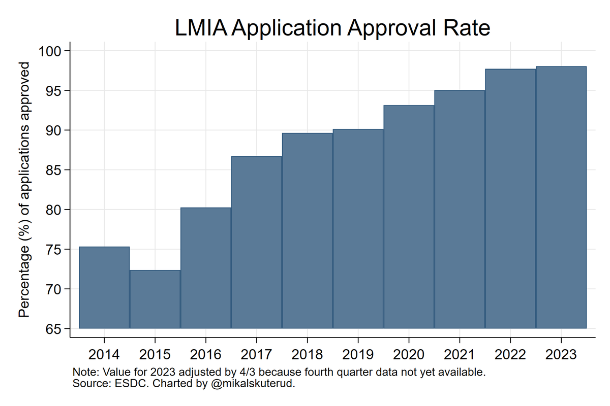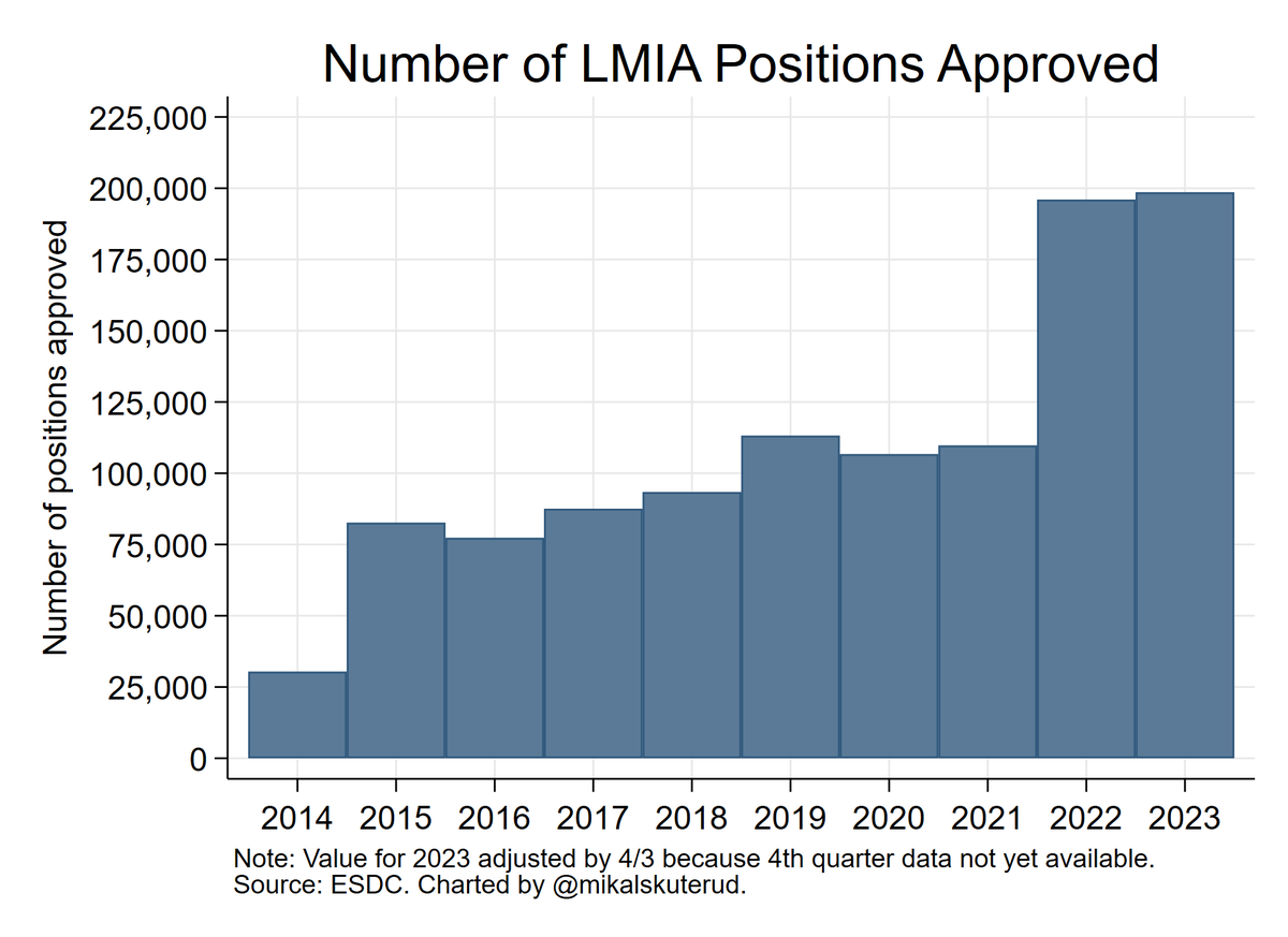 Growth in temporary numbers largely reflects foreign students and IMPs w/ no desire to stay in 🇨🇦. That's a deliberate policy that works. Interpreting expansion here as reflecting growth in migrant workers with no PR pathway is *highly* misleading. 2/6 www150.statcan.gc.ca/n1/pub/11-626-…