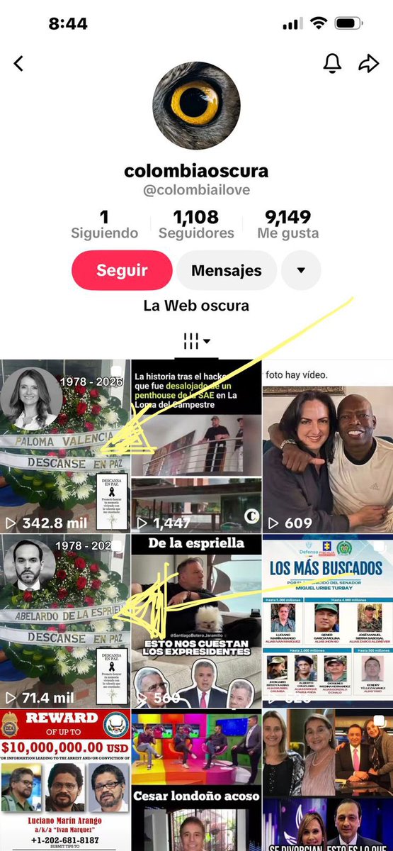 Ya ustedes saben que provienen de una cuenta de TikTok llamada @colombiailove bajo el nombre visible “colombiaoscura”.