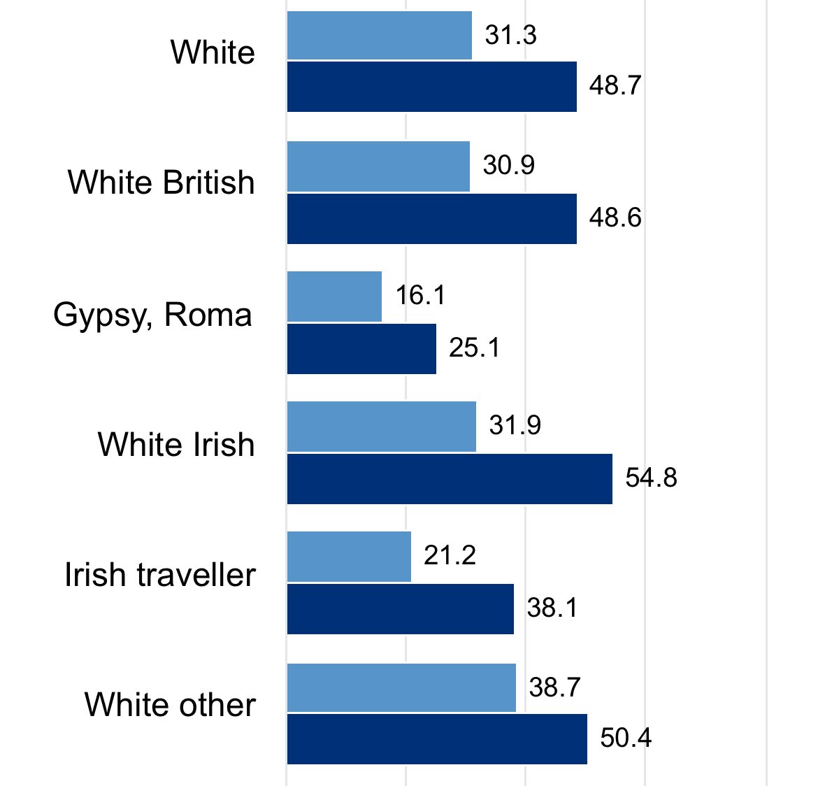 The Education Secretary is right to highlight low educational attainment in white working class children. Across other ethnicities poor kids do less well than wealthier ones. But the disparity among whites is huge. And it is explained not by skin colour but by family structure 1/