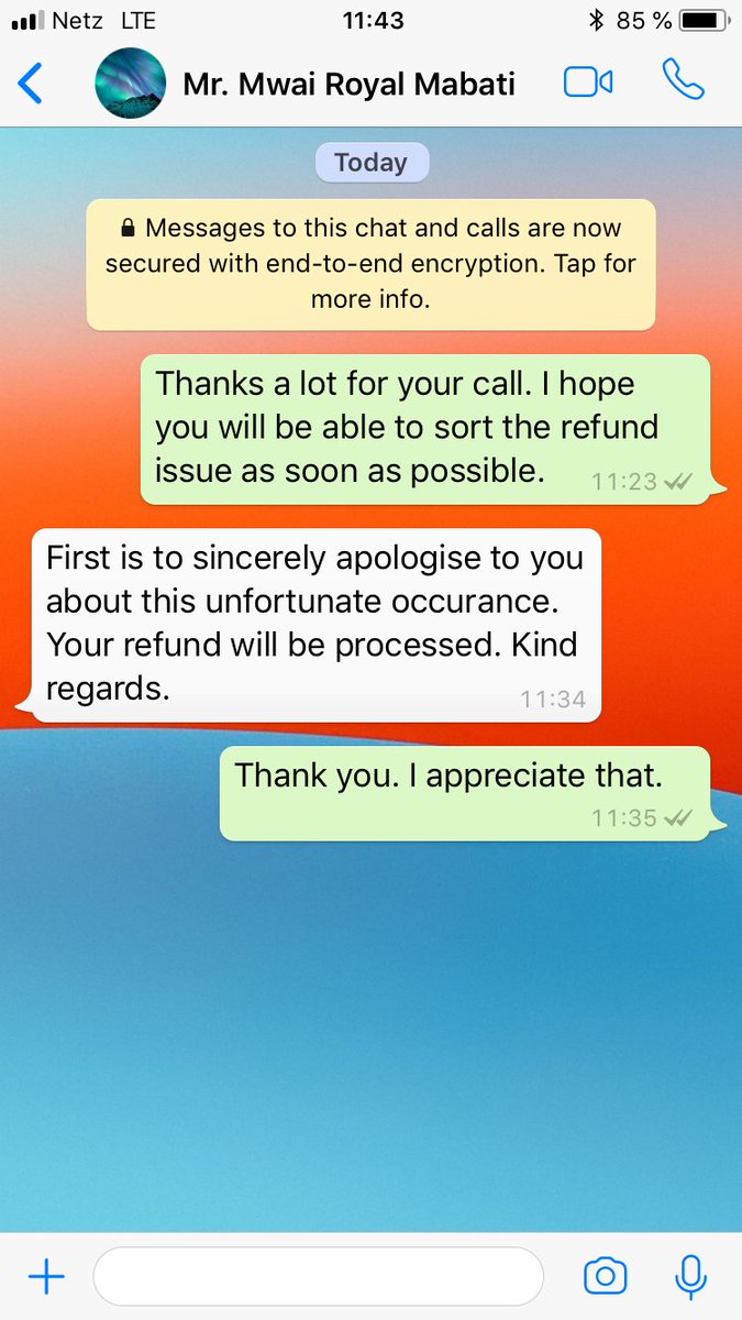 . I subsequently transferred the payment, around Ksh. 100,000 in foreign currency via a bank transfer to the Royal Mabati