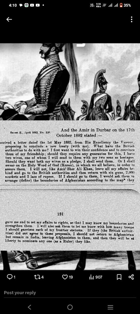 کیا اپ جانتے ہیں کہ 19 ویں صدی کے اخر میں افغانستان کو اس بری طرح سے شکست ہو چکی تھی کہ افغان بادشاہ اپنی بیویوں کو انگریزوں کے حوالے کرنے پر تیار تھا امن معاہدے کے لیے۔۔ اس بے غیرت افغان نے انگریزوں کو خط لکھا کہ امن معاہدے کے لیے میں اپ کو اپنی بیویاں دینے کو تیار ہوں۔۔