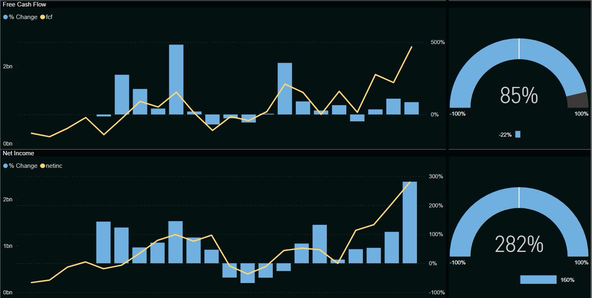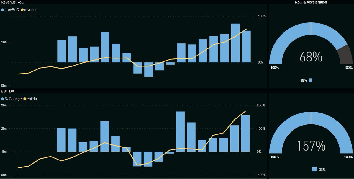 Revenue, EBITDA, Net Income and Free Cash Flow (FCF) all continued higher as well - although the acceleration of the push higher in revenue began to slow (-18%) after lapping the easiest Y/Y comparisons to the 2020 COVID lows