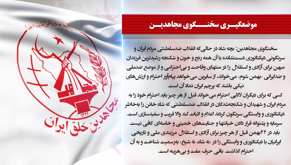 سخنگوی مجاهدین: بچه شاه در حالیکه انقلاب ضدسلطنتی مردم ایران را «بهمن شوم» میخواند، از سایرین میخواهد پیامآور احترام و ارزشهای نیکی باشند