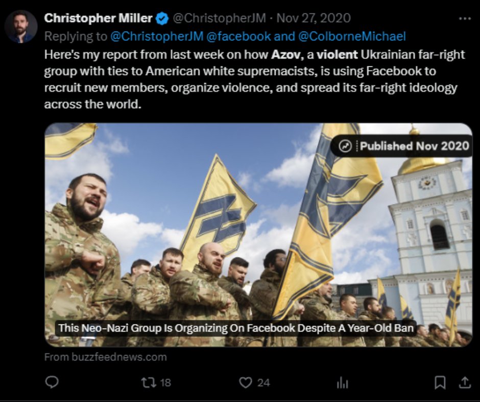 2/8 Аж до початку повномасштабного вторгнення РФ Міллер поширював російську пропаганду, розповідав Заходу про "нацистських екстремістів" в Україні та демонізував "Азов".