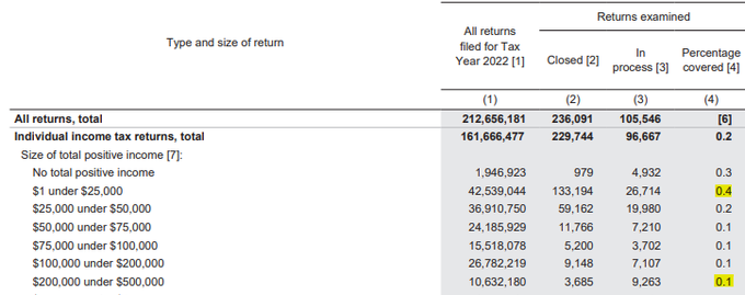 🚨NEW: The IRS just published its actual tax audit rates.