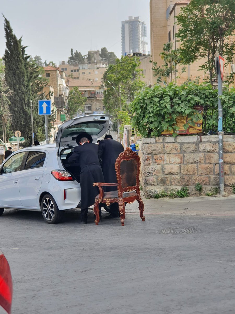 הכסא עליו ישב הרבי מויז'ניץ ויליאמסבורג בשבת הקרובה בירושלים רגע לפני הכנסתו לרכב. הכסא הובא מביהמ"ד סאטמר ברחוב יואל שמשמש את רב הקהילה
