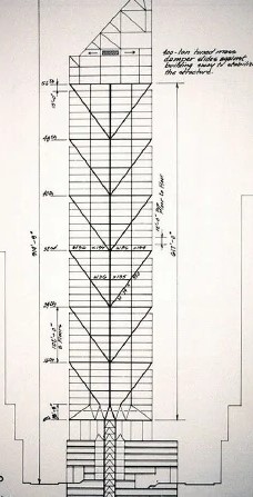 Καλή ιδέα αλλά πως θα το στηρίξουμε αν στις γωνίες δεν υπάρχουν κολώνες; Έχω σχέδιο λέει. Θα κάνουμε έναν εξωτερικό σκελετό από ατσάλινες διαγώνιες δοκούς. Τις κάθετες θα τις κόβουμε ανά οκτώ ορόφους οπότε όλο το βάρος θα πάει στο κέντρο. Και γαμώ τις ιδέες λένε, ξεκινάμε.