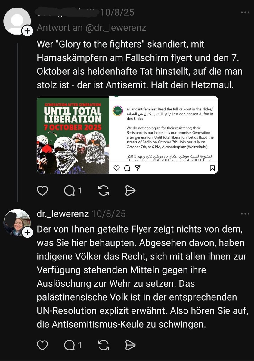 "Holocaust und Gaskammern für Palästinenser:innen?" Dieser Beitrag wiederum rechtfertigt im Kern eine Gleichsetzung des Holocausts mit dem Krieg Israels gegen die Hamas im Gaza-Streifen. Die Äußerung "End the Palestinian Holocaust"[sich!] sei jedenfalls aufgrund einzelner...