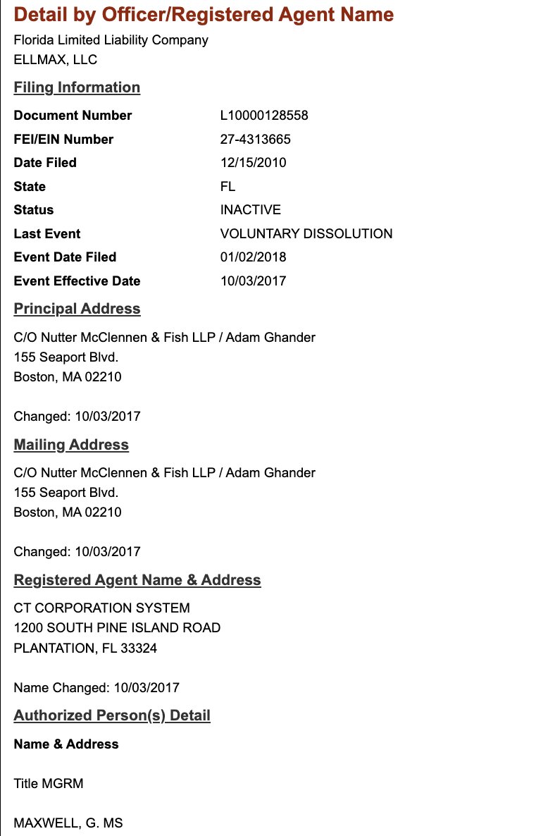 In 2010, Ghislaine Maxwell incorporated EllMax LLC in Florida. search.sunbiz.org/Inquiry/Corpor…