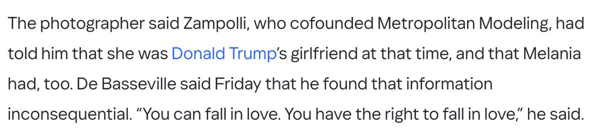 During the photo shoot (I presume) Paolo Zampolli and Melania told the photographer, Alexandre de Basseville (separately), that Donald Trump was her boyfriend! 👀 yahoo.com/entertainment/…