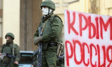 Am 27. Februar 2014 besetzten bewaffnete Männer das Regionalparlament und den Regierungssitz auf der Krim und hissten die russische Flagge. Am 1. März bat Putin den Föderationsrat offiziell um die Genehmigung, russische Streitkräfte "auf dem Territorium der Ukraine" einzusetzen.