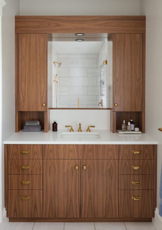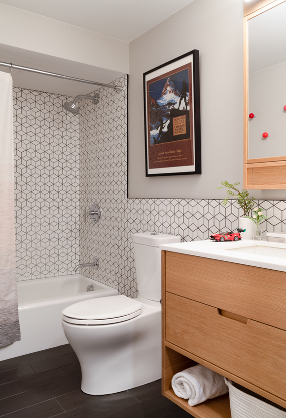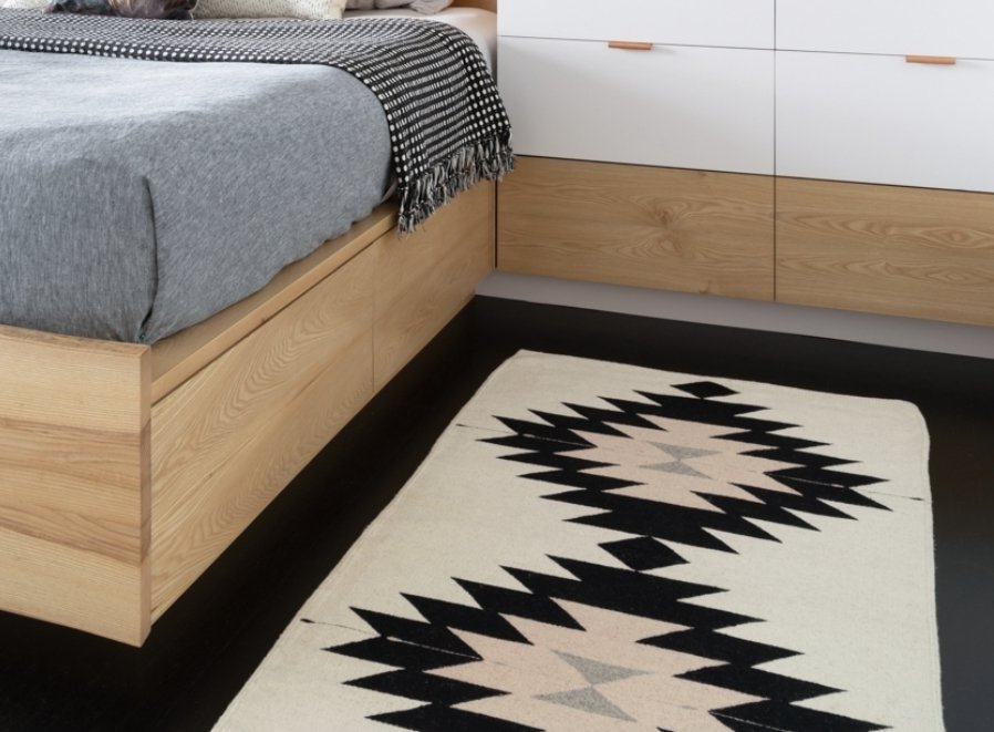 First, we raised the bed on a platform, and created deep drawers under the bed. This is great storage for linens, pillows, blankets, and other bulky items.