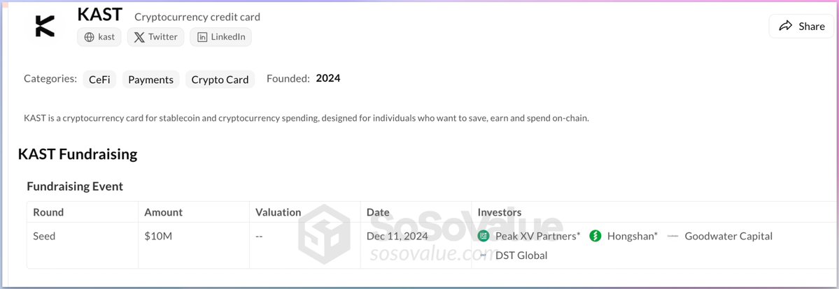Kast ( @KASTcard ) raised $10m in a funding round with participation from several partners, which include PeakXV, Goodwater, among two other Investors.