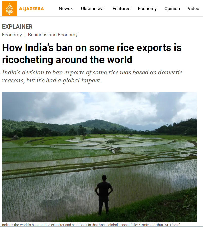 Harga beras import melambung bila India, pengeksport terbesar beras dunia dah takmau eksport beras mereka.
