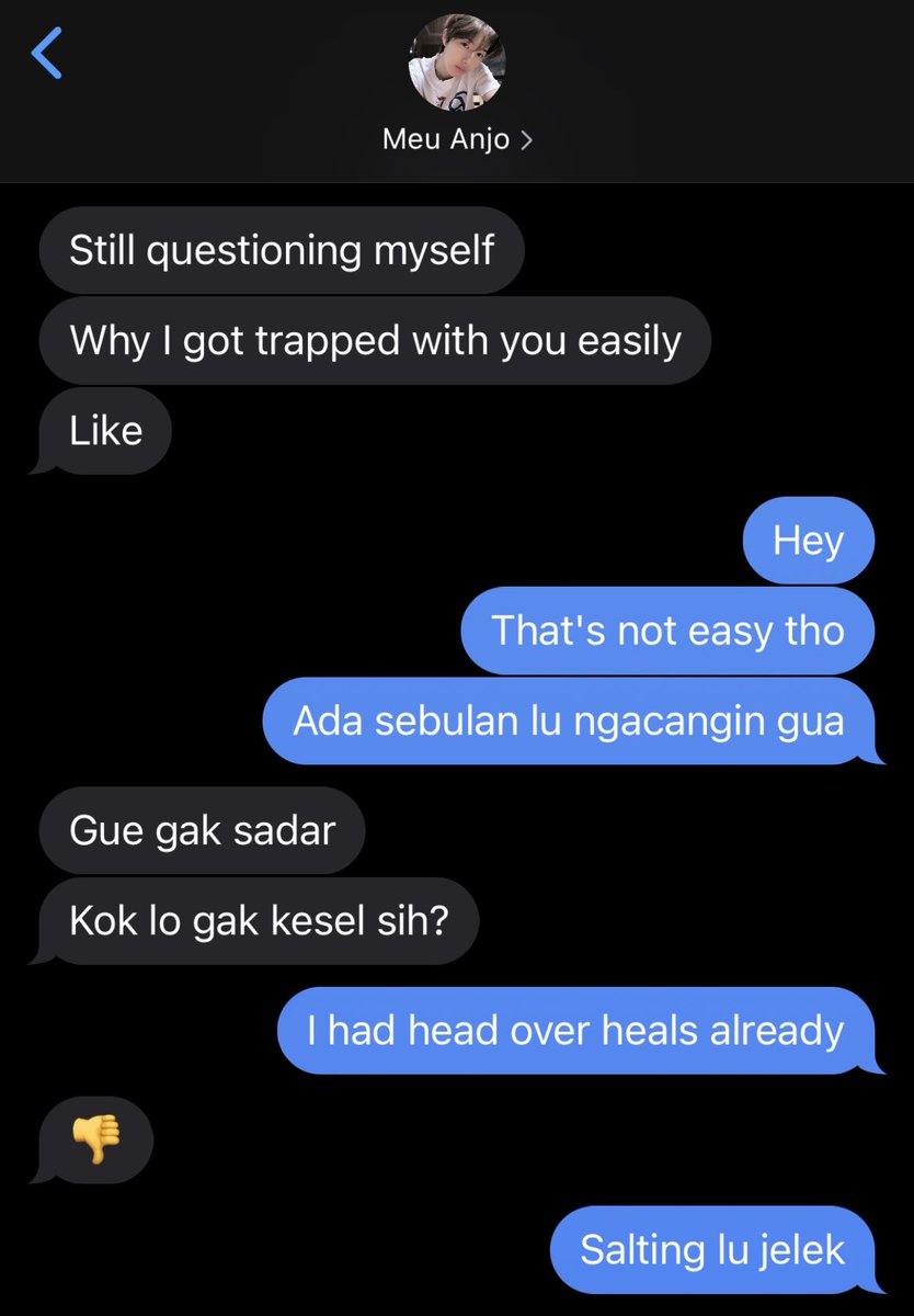 Diamnya 𝖱𝖾𝗇𝗃𝗎𝗇 selama dua hari bukan maksud untuk menghiraukan kekasihnya. Melainkan memberi duplikat kudapan favorit 𝖧𝖺𝖾𝖼𝗁𝖺𝗇 yang biasa ia bawa selepas balik kampung.
