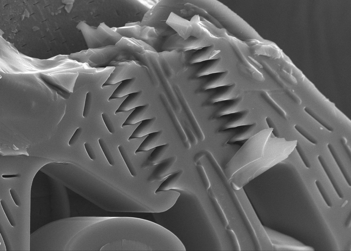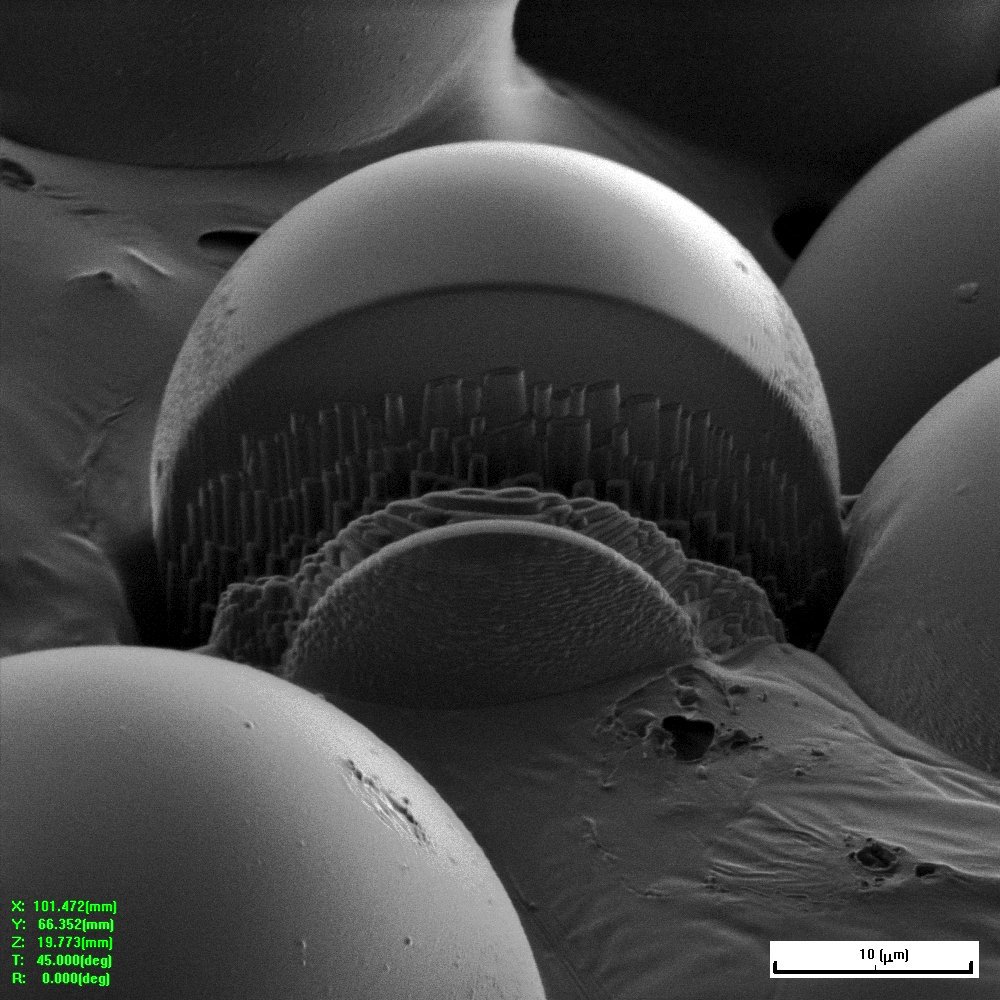 Decaping the device cleanly is difficult, what makes it special is how small it is. Instead of being packaged in epoxy like most devices it's entirely encased in silicon, making it challenging to cleanly open up. Regardless it produces some great SEM images.