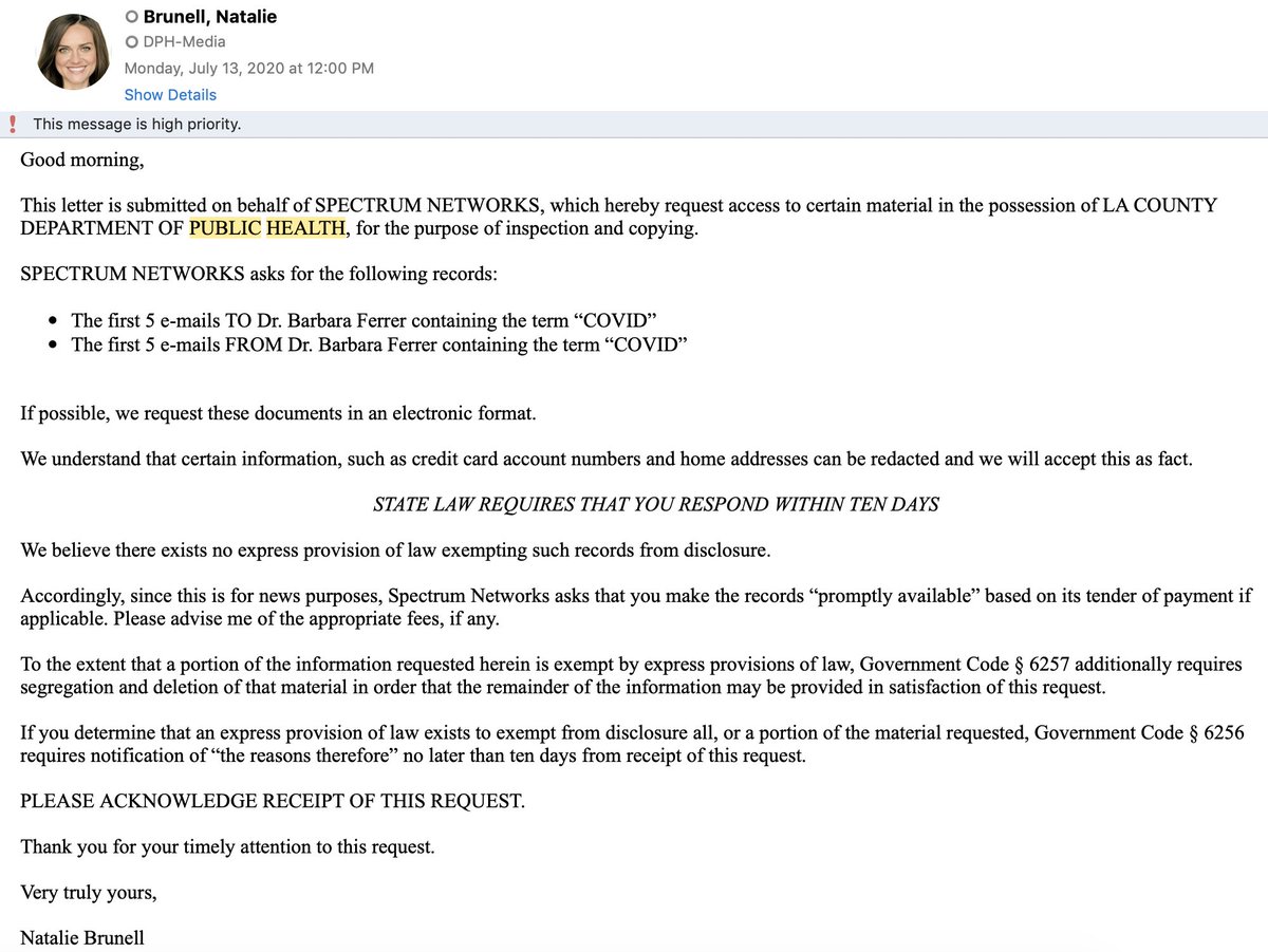 I'm sharing the following thread because I feel the public should know how difficult it has been for journalists like myself to receive transparent and timely public records request responses from some @CountyofLA departments during this pandemic...Here goes... #transparency