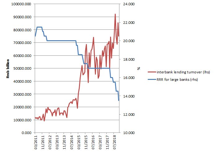 #PBOC cuts to banks' reserve requirement ratio (RRR) successfully pushes financial system liquidity back higher... (2) ...but shadow banking crackdown means very little of this is making it into real lending, unlike in previous easing cycles