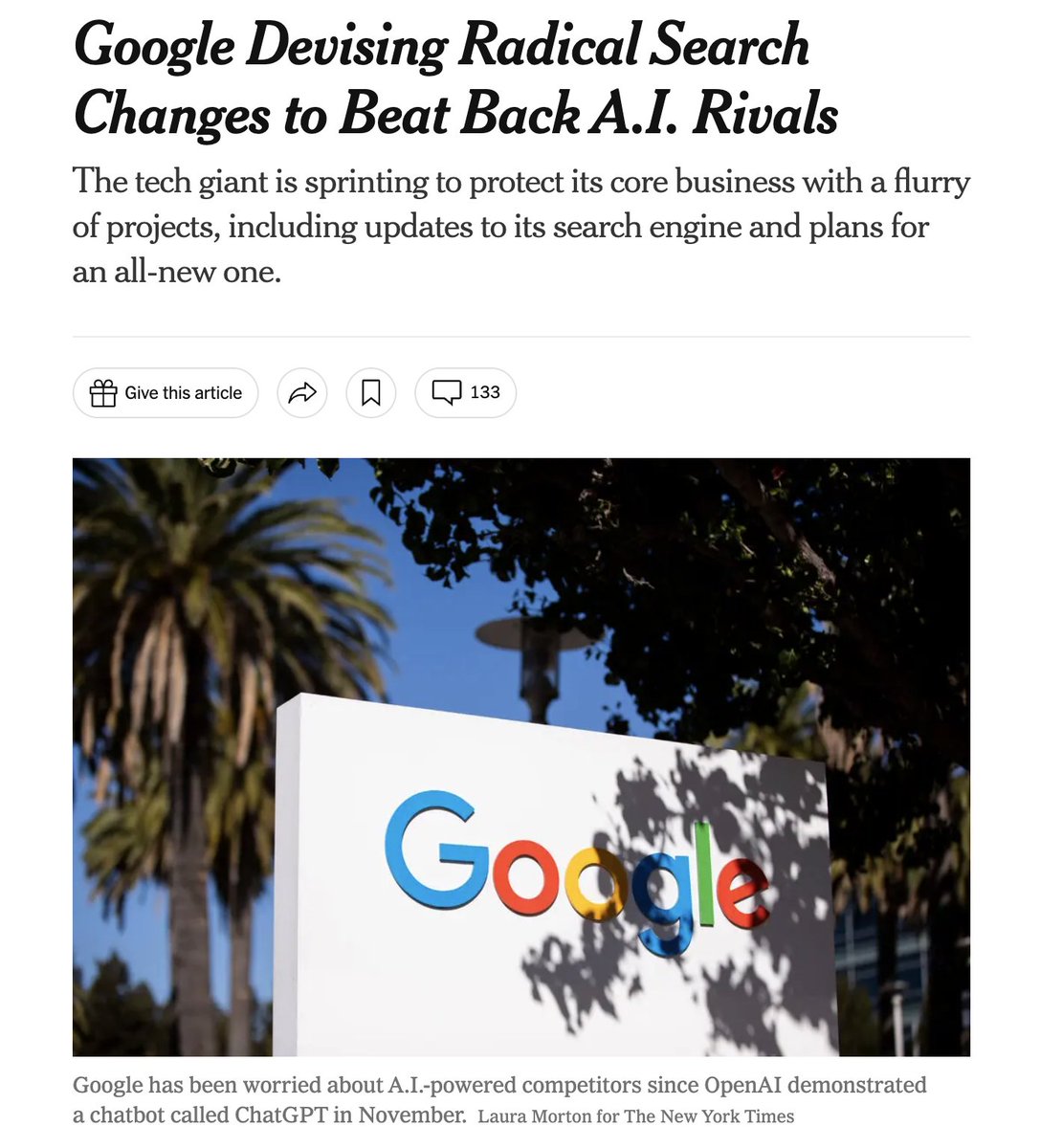 > Estas se gestaron dentro del plan de emergencia de Google, conocido internamente como Project MAGI (quédate con esto), para responder a ChatGPT y el pánico tras el rumor de Samsung de poner Bing por defecto.