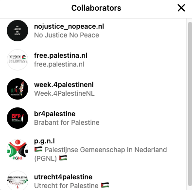 Organizers of the violent demonstration included 6 Dutch pro-Palestinian groups active on Instagram.