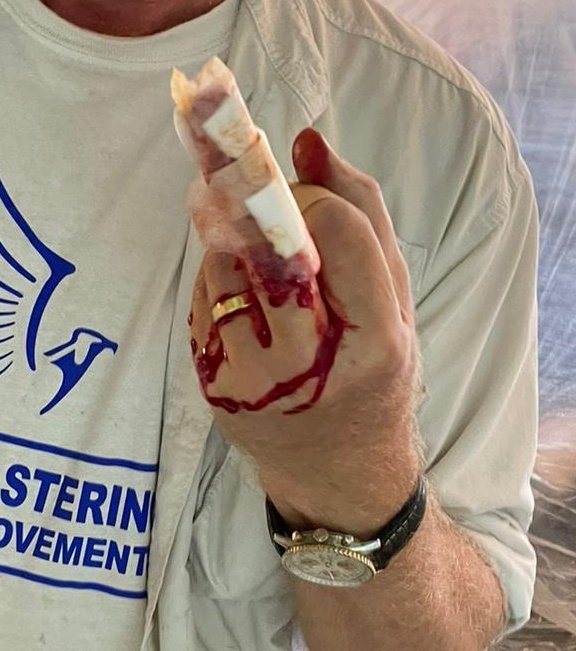 So, I had a little mishap with a power tool today. Cut the top of two fingers. Enough to go to A&E in Abingdon for a checkout.
