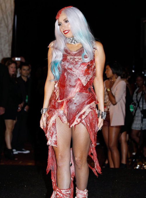 lady gaga wearing a meat dress at the 2010 vmas