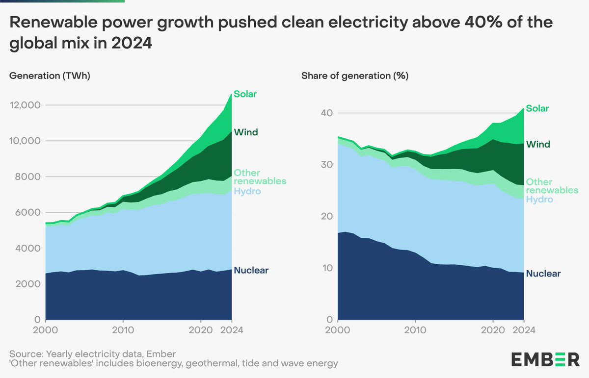 @ember_energy Rapid growth in wind and solar has pushed electricity from low-carbon sources above 40% for the first time since the 1940s.