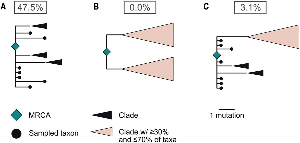 https://twitter.com/MichaelWorobey/status/1759782755431526608I'm serious. For the primary analysis, I get a 1/10 likelihood from 1000 complete resamples of the final stochastic phase (mutations generated by "stableCoalescence_cladeAnalysis.py") using the 1100 time trees from the Zenodo data. I'm worried the other four analyses...