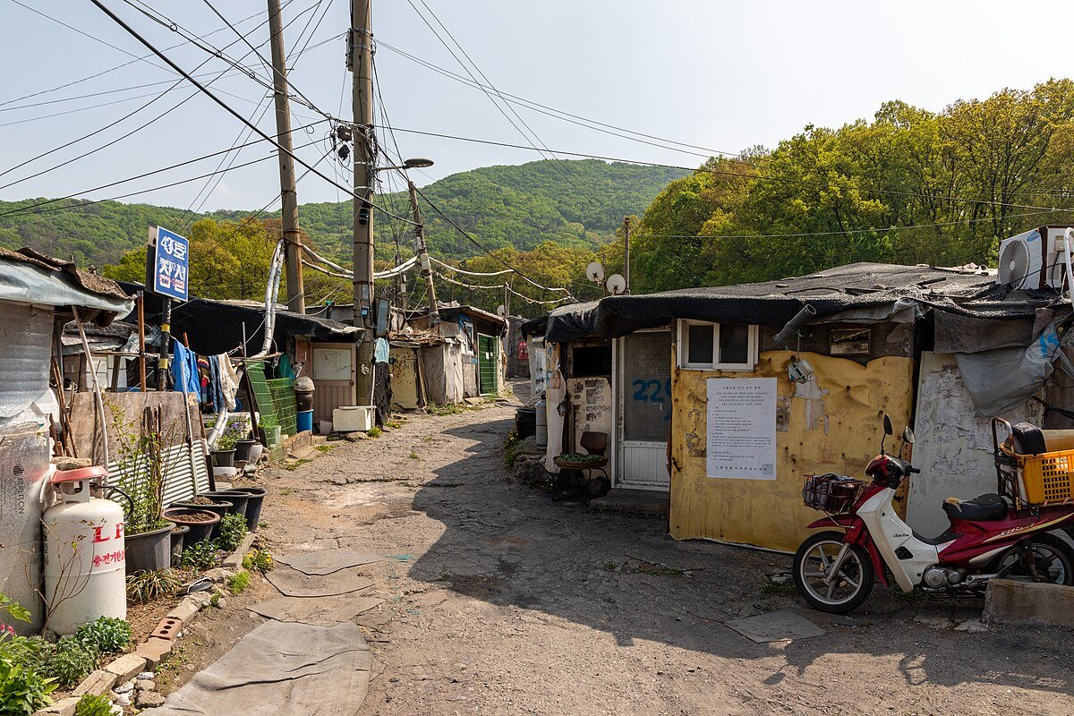 Oba miejsca ze zdjęć wyżej dzieli odległość jedynie 3 km. Oba zdjęcia zostały wykonane w Korei – w Seulu. Pierwsze z nich to centrum Gangnamu, najdroższej dzielnicy Seulu, symbol nowoczesności i bogactwa Korei. Drugie z nich to Guryong, slumsy położone na obrzeżach Gangnamu. 2/18