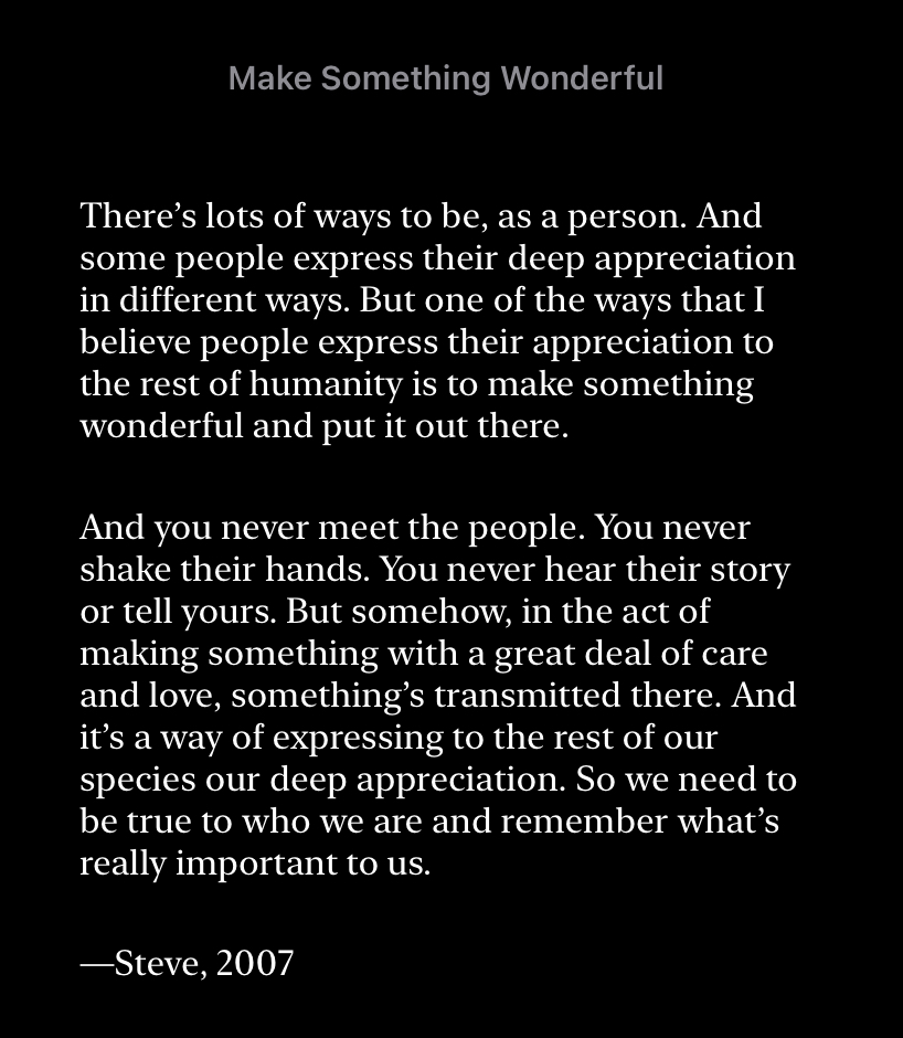 その序文に「素晴らしいものを作り出すこと」というジョブズが2007年に書いた文章がある