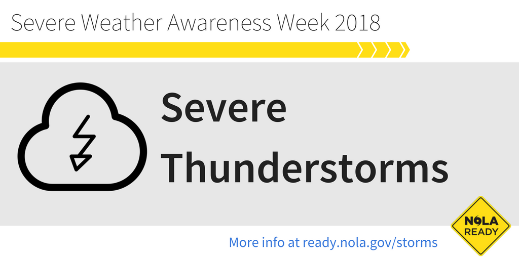 It's #SevereWeatherAwarenessWeek in Louisiana. Today's topic: severe thunderstorms. A severe thunderstorm has winds of 58 mph or more and/or hail one inch in diameter or bigger. Dangers can include lightning, tornadoes, wind, hail, and flash flooding. #lawx