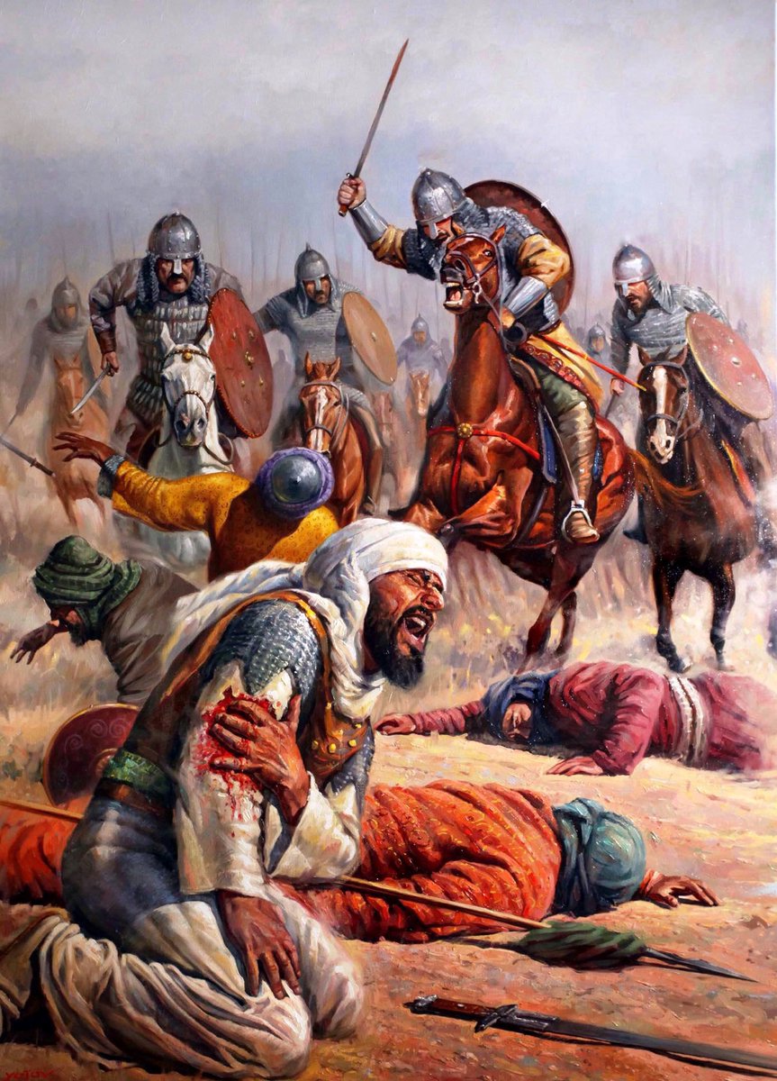 In the 7th century invasion from the Muslim caliphate, Slavs, Avars, Lombards, and Bulgars all significantly weakened the empire and put it on the defensive immediately after its stunning victory over the Persians in the 620s.
