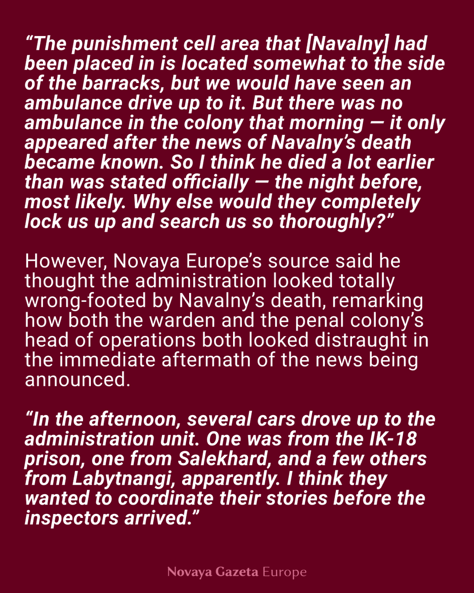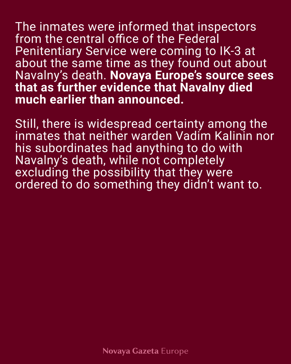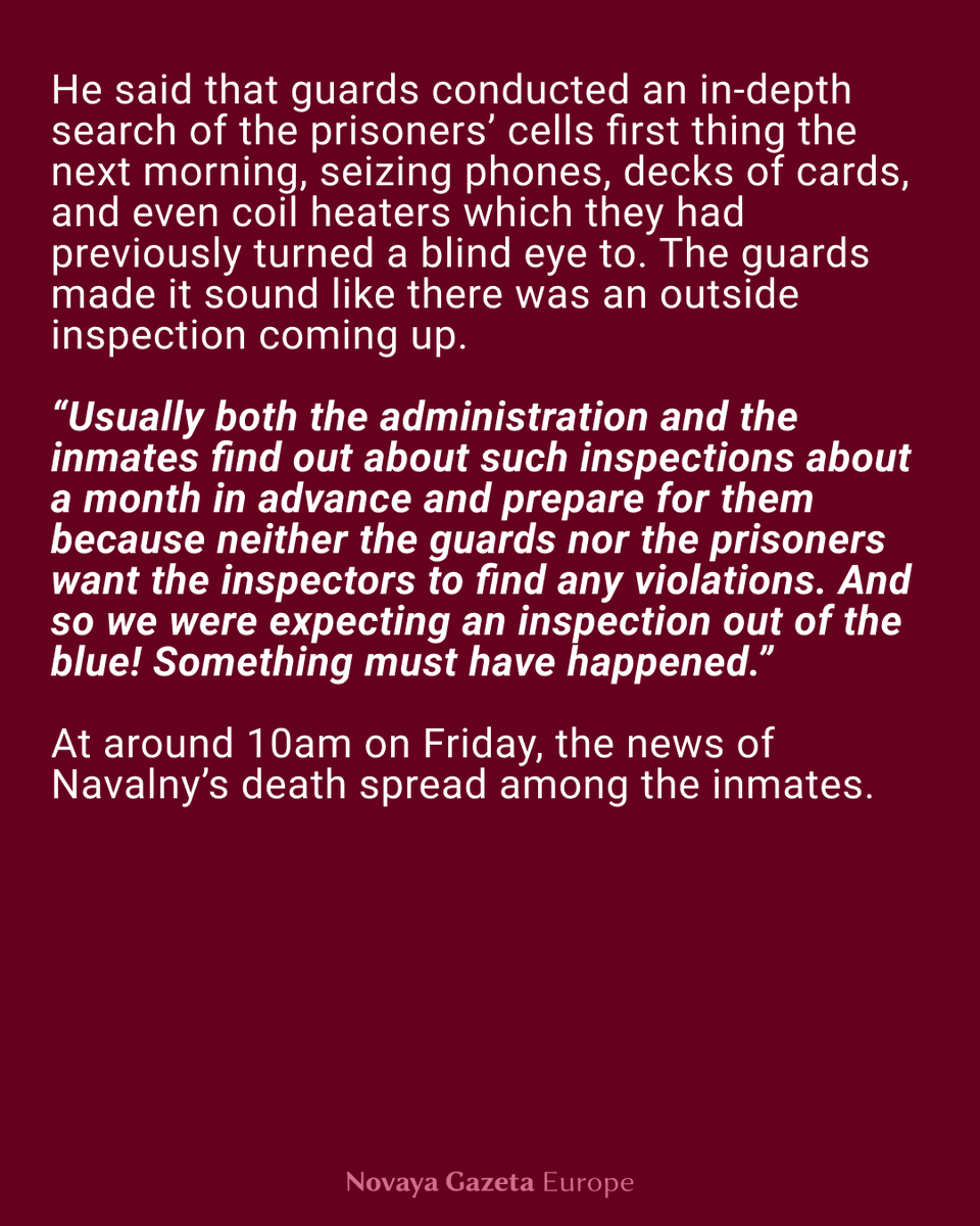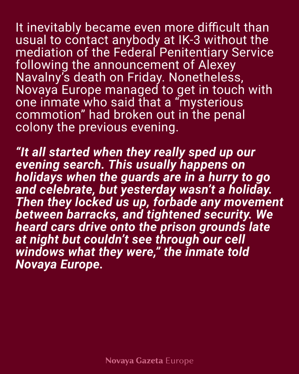 We talked to an inmate who said that a “mysterious commotion” had broken out in the penal colony on Thursday evening. 2/5