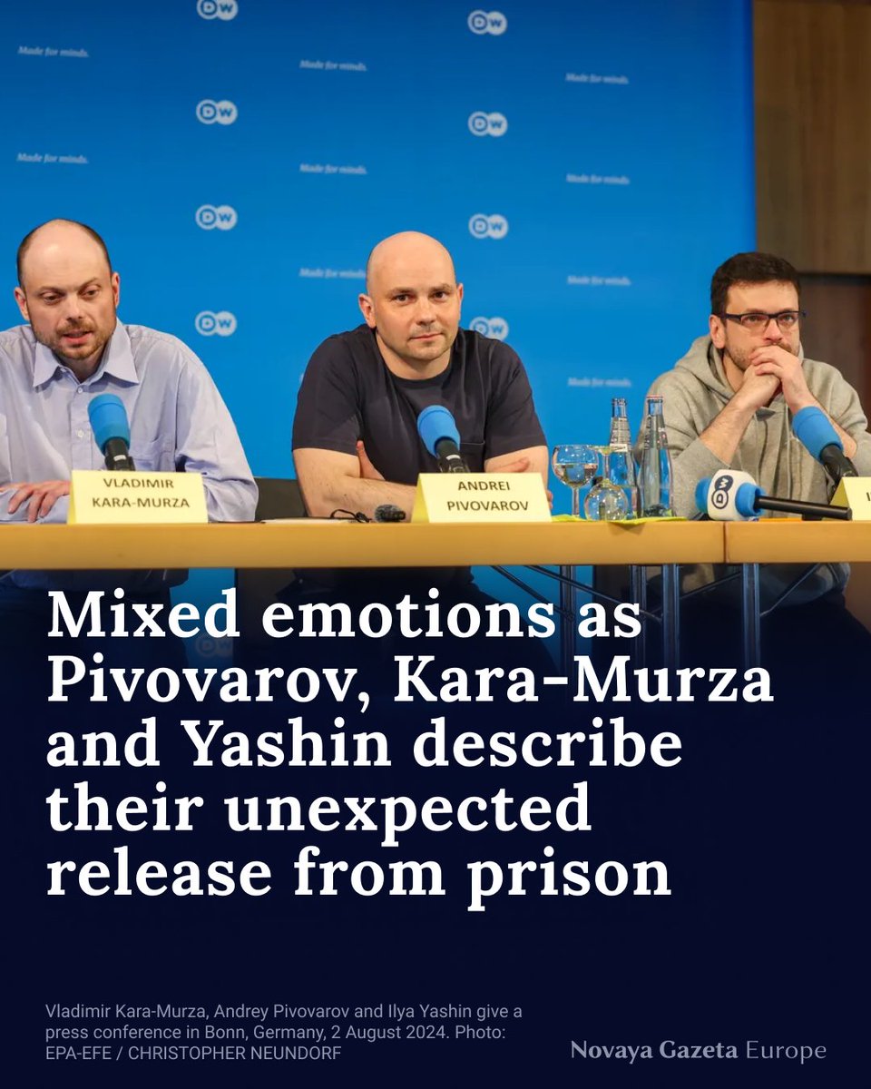 Addressing reporters for over an hour, Vladimir Kara-Murza, Andrey Pivovarov and Ilya Yashin were at times emotional, humorous, angry and defiant as they took turns to describe their experiences of being deported from Russia at short notice.