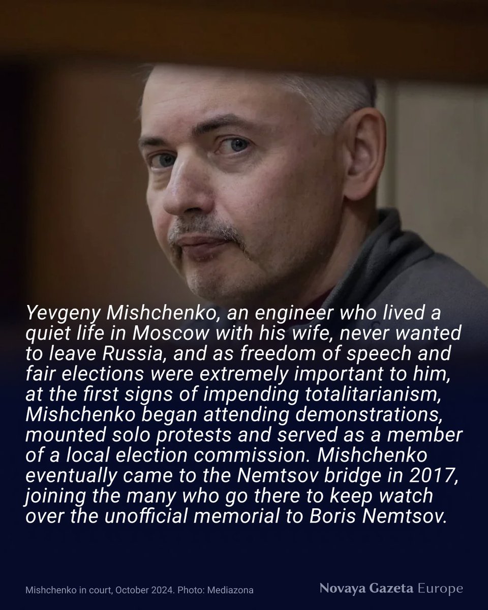 Mishchenko was detained several times for his attendance of protests, as well as for his solo pickets, and even for reading the Constitution aloud on Red Square.