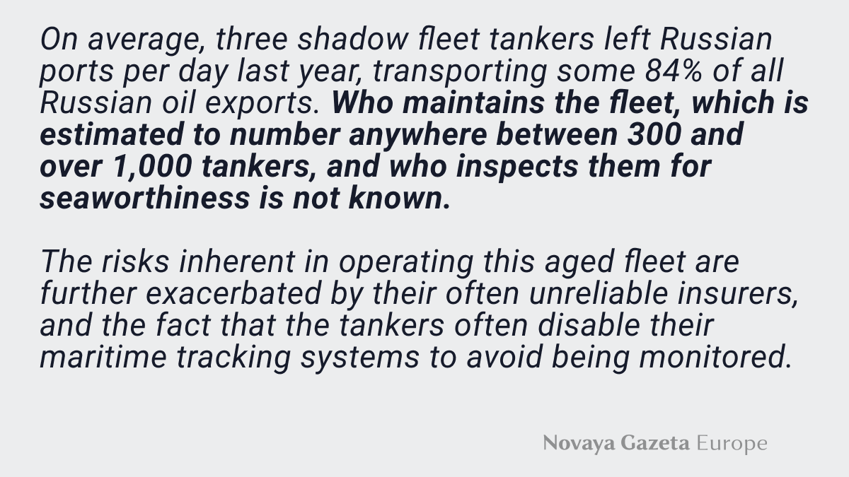 However, four mysterious explosions on shadow fleet oil tankers in the Baltic and Mediterranean Seas in the past three months have made many wonder whether, as well as undermining the sanctions on Russia, the fleet poses a growing threat to the global ecosystems.