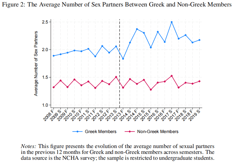 The increase in sex partners was also limited to Greek students, even well after Tinder's launch, and even there it was modest. I don't know if I'd consider an 0.2 extra partners a 'sharp' rise.