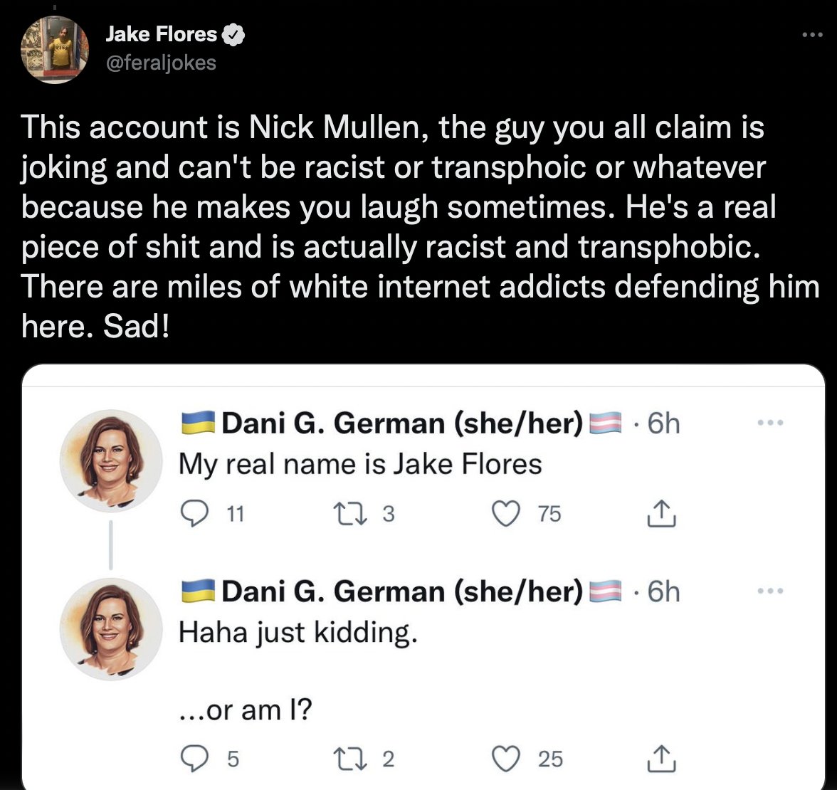 Heads up, I don't run this Dani G account or any other account. I don't ever really want to address Jake's bullshit because we were v good friends for a decade and I'm sympathetic to his position (middle aged, extremely shitty comic, only getting worse, alienated his peers)