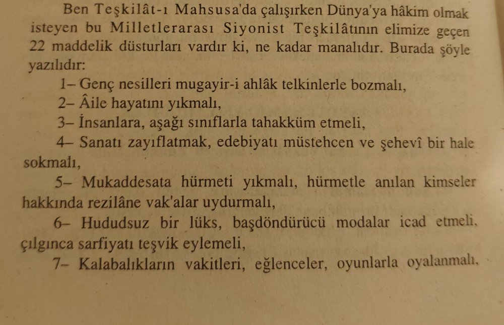 Teşkilât-ı Mahsusa’nın son Başkanı olan Hüsamettin Ertürk, Siyonistlerin Protokolleri’ni ele geçirmiş ve anılarında bunları açıklamıştı.