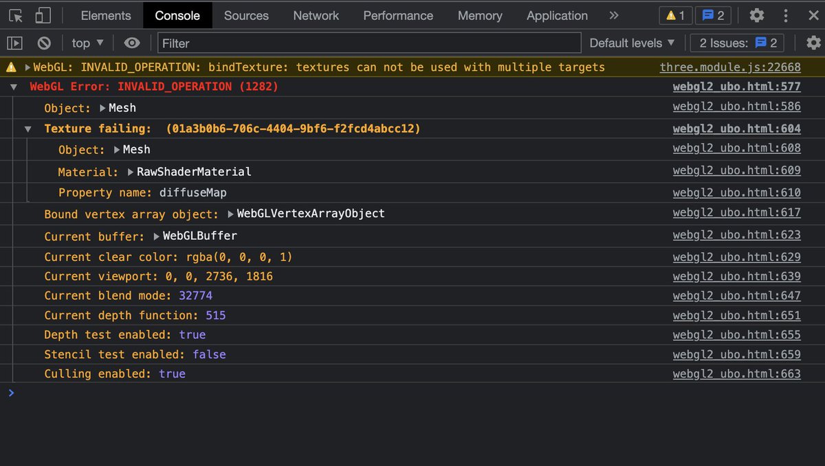 Instead of vague error messages like "WebGL: INVALID_OPERATION", my module logs the specific Mesh, Material, and Texture causing the issue.