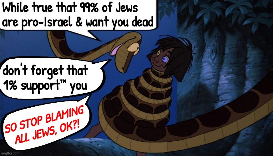 "Oh hurr durr I get that 99% of them are Zios, but I ackshully know 1 out of the 15 million Jews, who legit supports Palis"